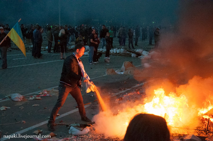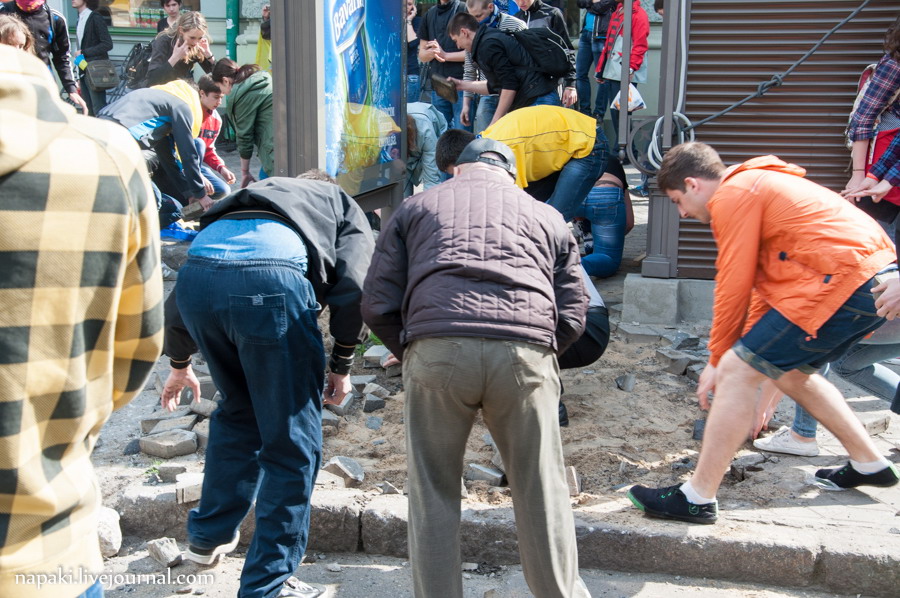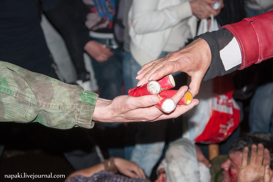 После обстрела - выход из за баррикад. Свежие коктейли молотова.