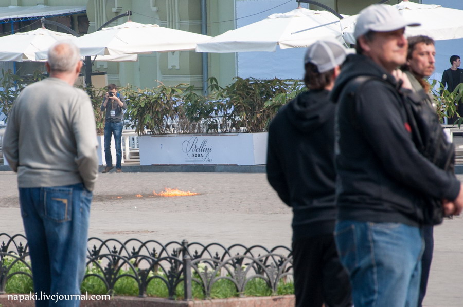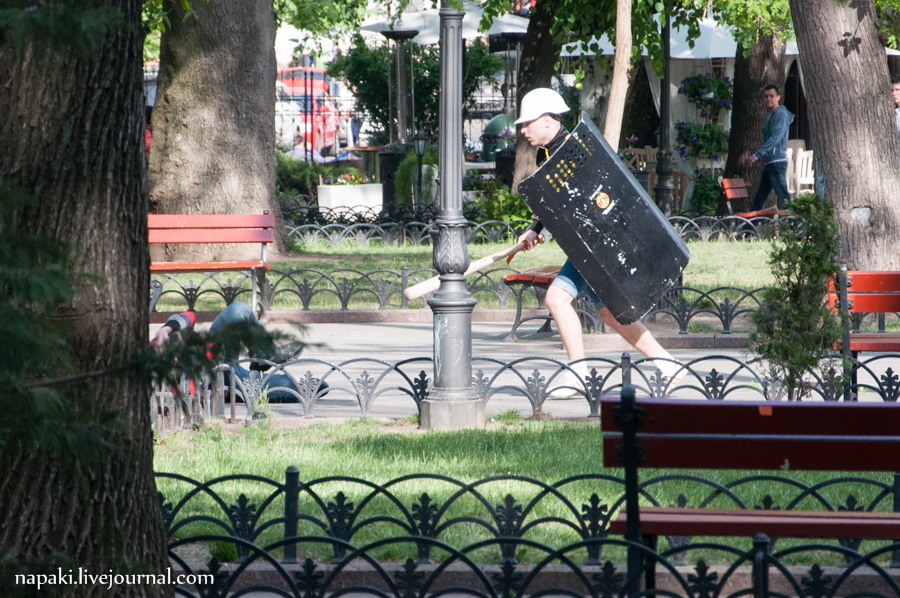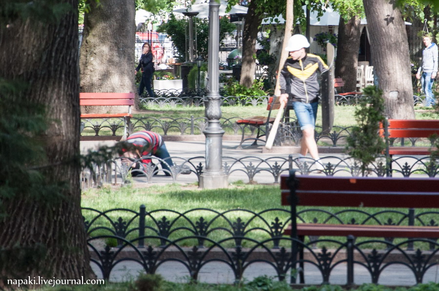 После этого пророссийские боевики решили выйти в Гор. сад, где были фотографы и гуляющие. Народ начал разбегаться, но кого-то все же словили и избили.