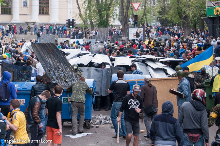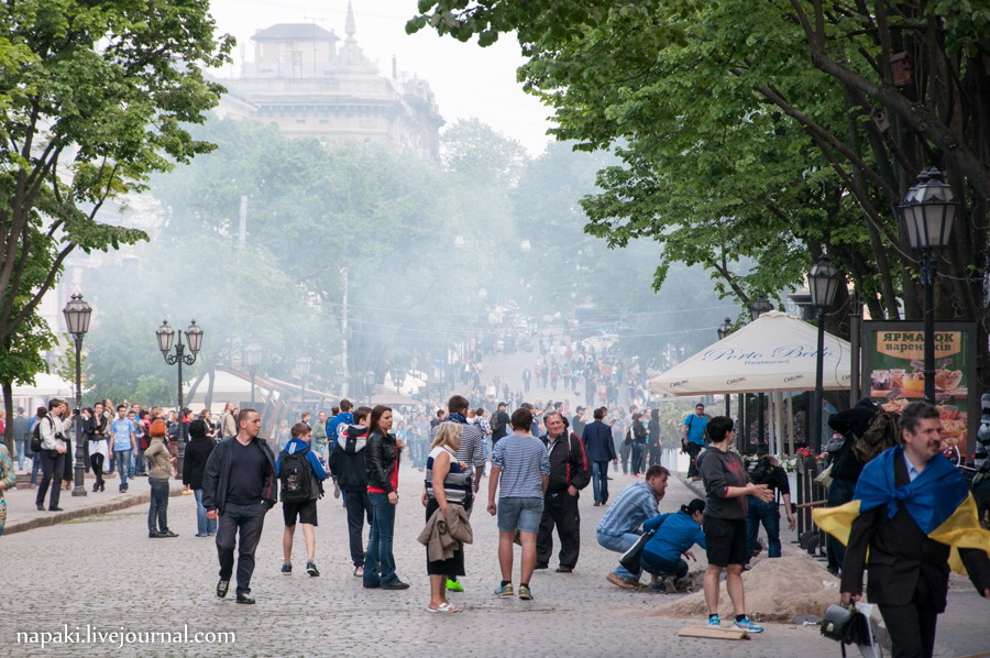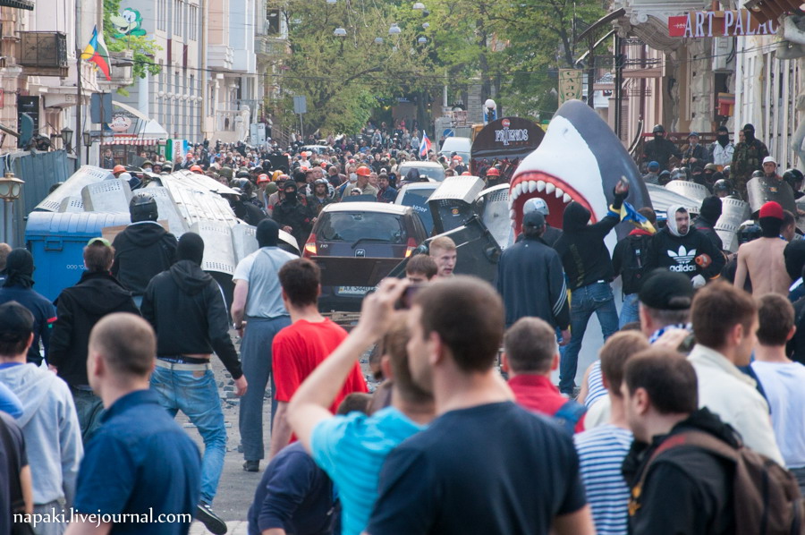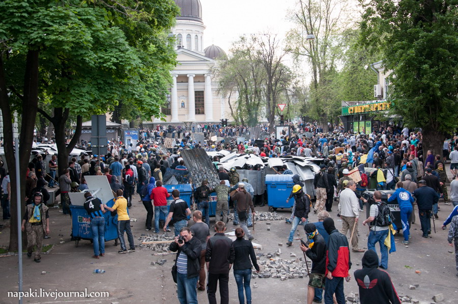 Вначале немного предыстории для тех, кто живет не в Одессе и не в курсе событий, происходивших здесь ранее. В Одессе до 2 мая существовало два лагеря, условно их можно назвать «проукраинским» и «пророссийским». Оба лагера проводили митинги, сборы, марши по городу, которые заканчивались максимум локальными стычками и небольшими драками. Никаких серьезных столкновений до этого в Одессе не было и 1-го мая пророссийские сторонники провели в городе марш, которому никто не мешал. Пророссийские активисты также основали постоянный лагерь на одной из городских площадей, Куликовом поле, который служил «плацдармом» для их сборов. Кстати, буквально за день-два до событий 2 мая, в их рядах произошел раскол и часть людей из этого лагеря переехала в совсем другую часть города. Сейчас высказываются мнения, что раскол был спровоцирован именно подготовкой части активистов Куликова поля к пятничным событиям.