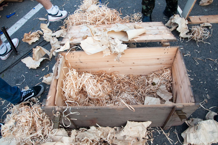 У одного из карманов высыпались какие-то хлопушки или файеры, после чего на него чуть снова не накинулись, но удалось людей успокоить.